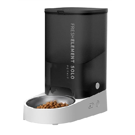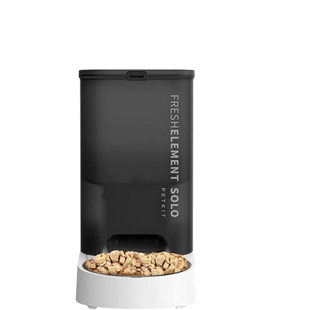PETKIT Fresh Element Solo yra išmanus automatinis šėrimo įrenginys, skirtas katėms ir mažiems šunims. Jis leidžia nuotoliniu būdu valdyti maitinimo grafiką ir stebėti augintinio mitybos įpročius per PETKIT programėlę. Įrenginys užtikrina sklandų maisto dozavimą, turi 3 litrų talpą (12 puodelių), dvigubą maitinimo apsaugą ir lengvai valomą dizainą, kad kasdienis maitinimas būtų šviežias ir nuoseklus.