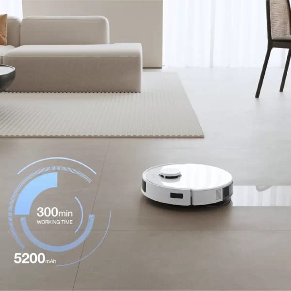 „DEEBOT N20 Family“ gali pasigirti 300 minučių veikimo trukme, maitinama 5200 mAh talpos baterija, užtikrinančia ilgalaikes valymo sesijas iki 550 kvadratinių metrų vienu įkrovimu, be vargo ir nepertraukiamai išvalant visus jūsų namus.